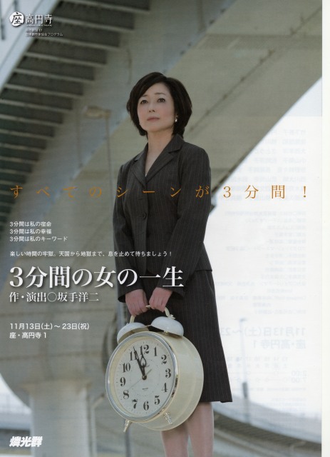 この舞台は、すべてのシーンが3分間で描かれる「世界演劇史上初」の試みだそうです。